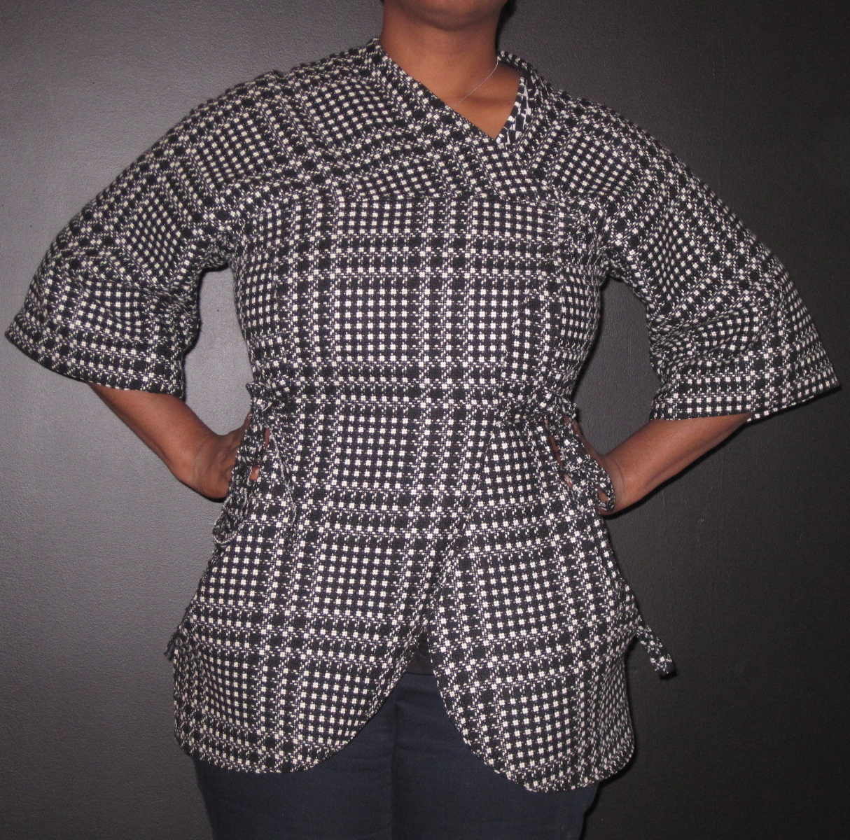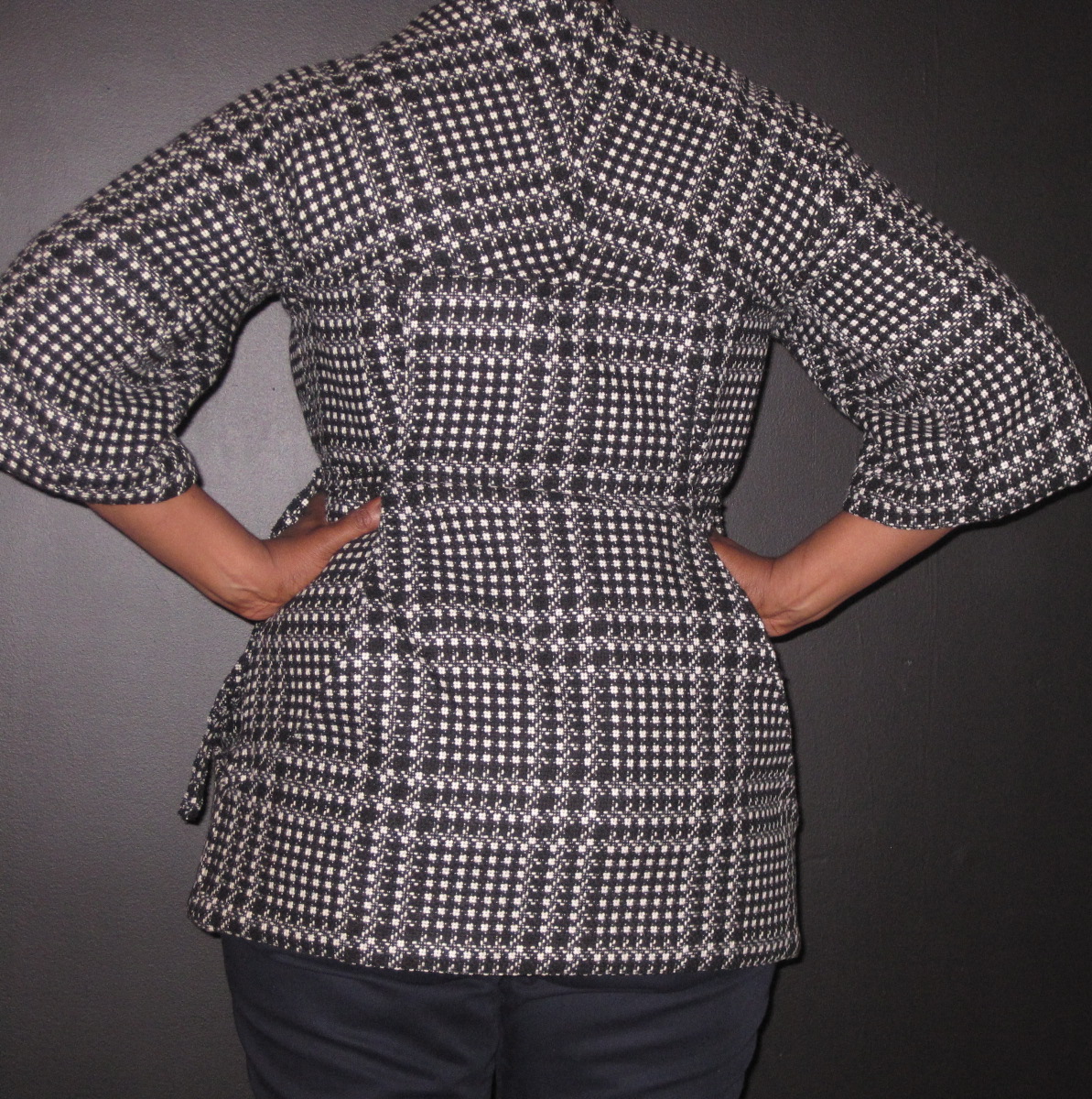 We’re just going to enjoy the fact that it’s over. No more underlining, no more bits of raveling fabric all over the carpet. No more wringing my hands over possibly misinterpreting the instructions. Just the peace that comes with success (read the delirium that comes from fusterclucking your own person to fatigue, whatever).