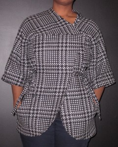 I noticed that the left front hangs a little lower than the right front but I think that’s because there should be another snap on the inside of the jacket because the fabric is heavy. It’ll happen.